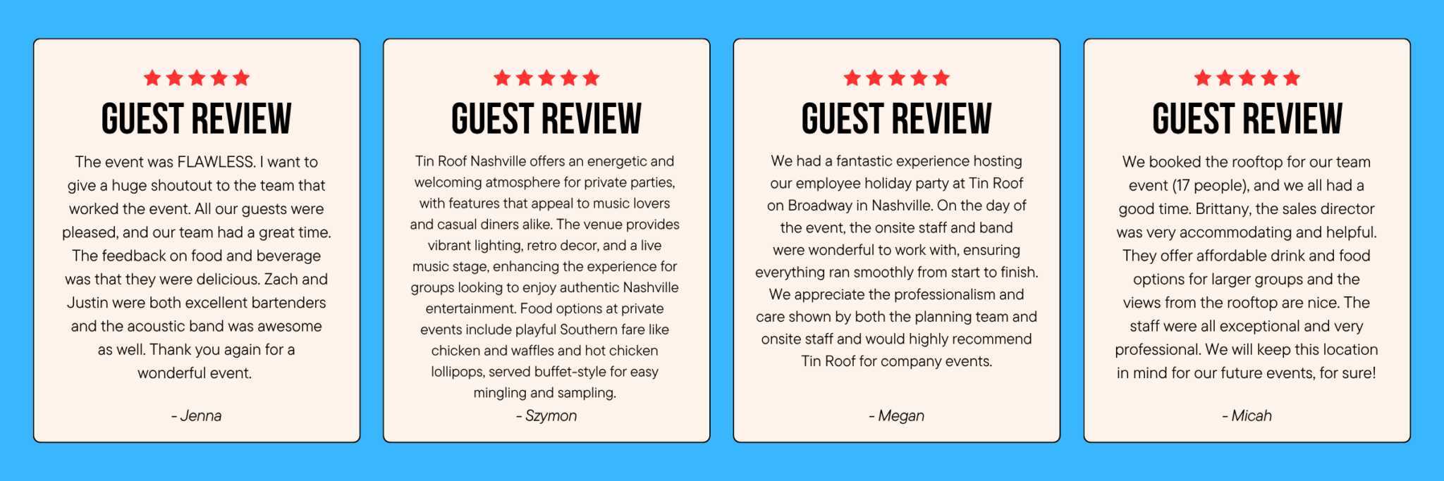 Bring your group to the Roof! We are centrally located on Historic Lower Broadway in the heart of downtown Nashville within walking distance to the Music City Center, Bridgestone Arena, Nissan Stadium, the Country Music Hall of Fame & more! Our space is 10,000 square feet on 2 levels and a ROOFTOP and can accommodate up to 550 guests. Let us customize the perfect food, beverage, and entertainment package to make your event fun & amazing. With new big screen TV’s throughout, a 10’ projection screen, 3 full professional stages with top of the line sound & lighting packages, branding is made simple ensuring each event is unique for you and your guests.